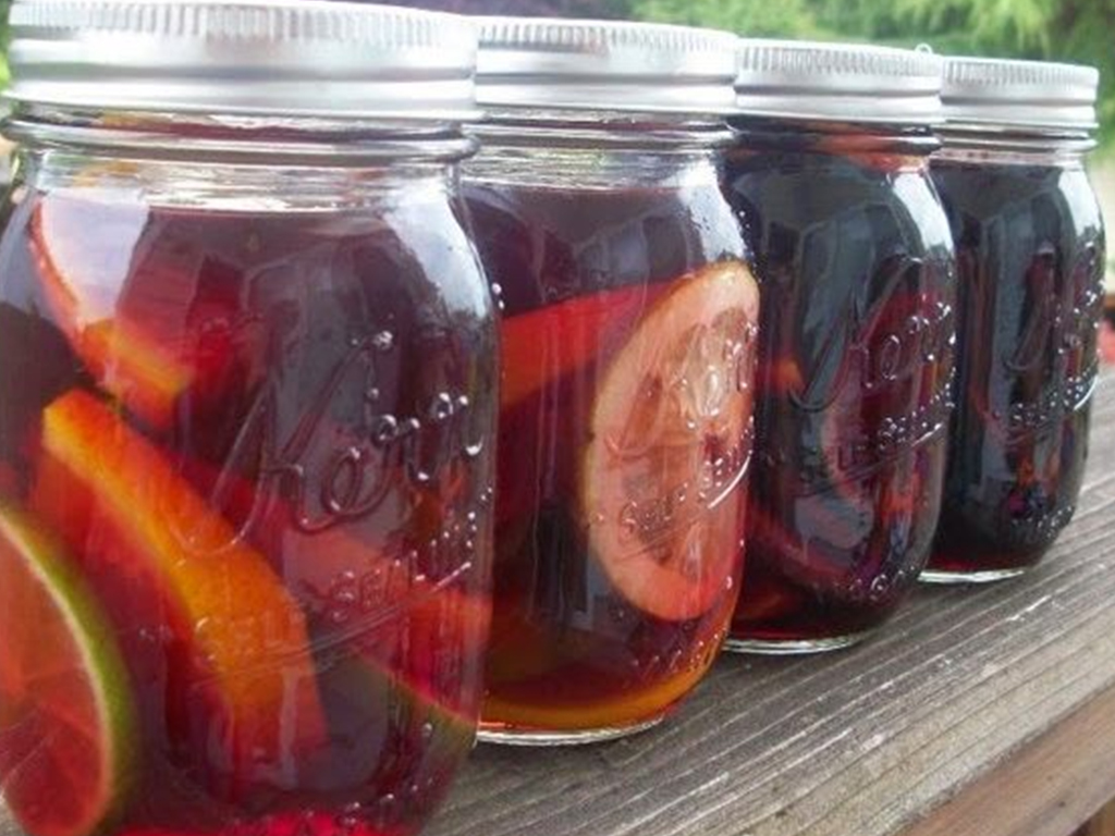 PREPARACIÓN Coloca las frutas en el fondo de una jarra, agrega los líquidos, endulza con azúcar y mezcla todo muy bien, puedes agregar más líquido en proporción si te quedo con mucha fruta o quieres hacer refill. Sirve en tarros mason o en copa de vino tinto globo. Agrega hielo o mete la jarra al refrigerador para que esté bien frío al momento de servir.